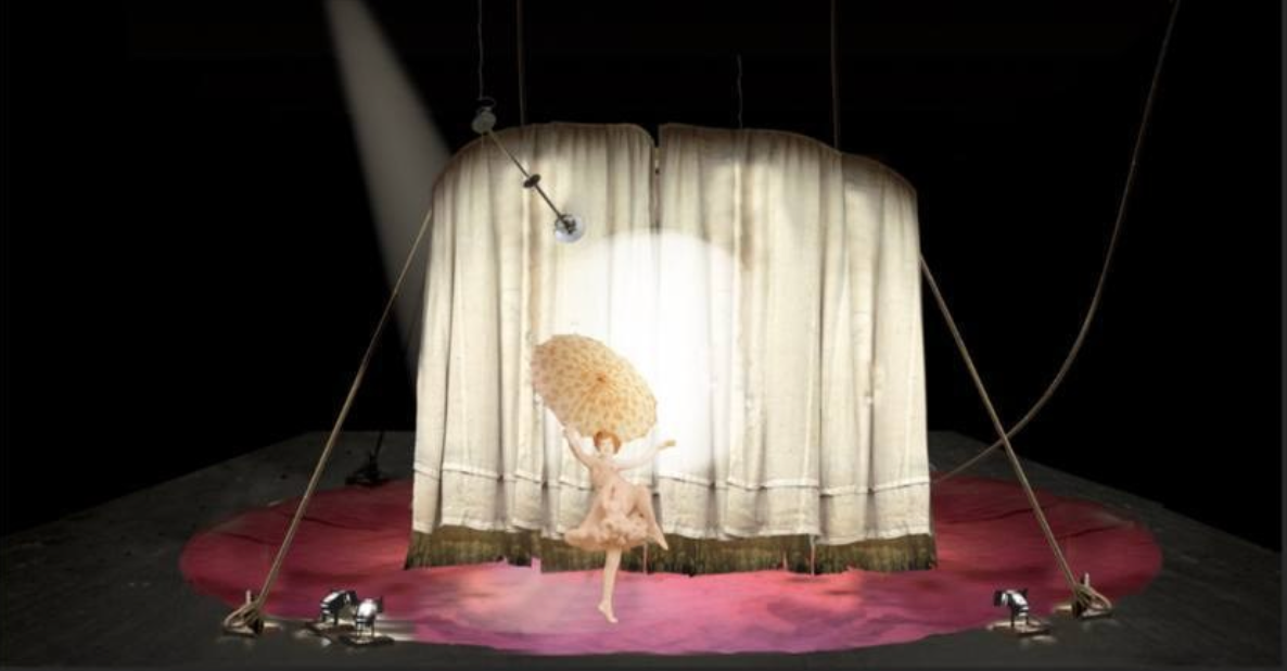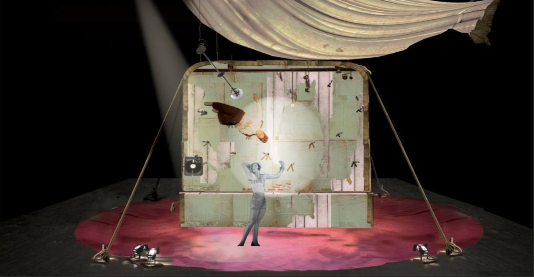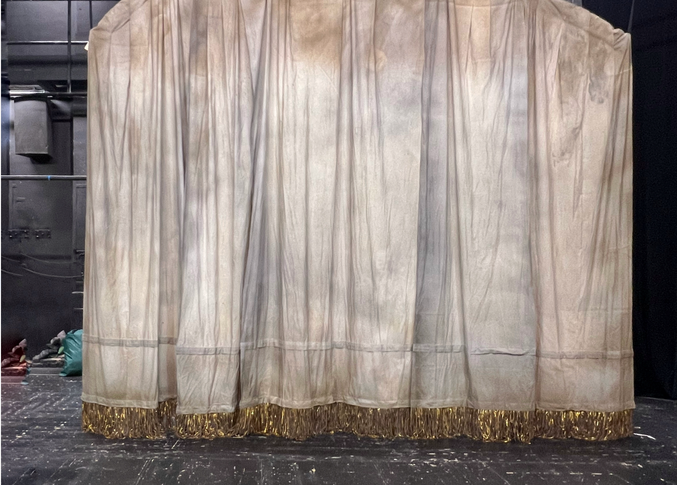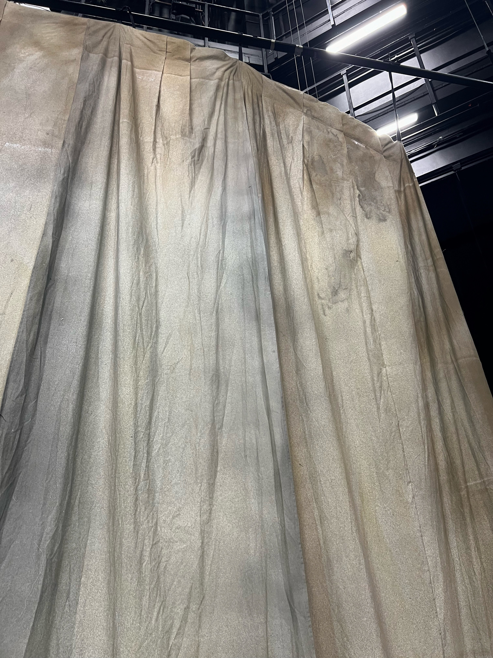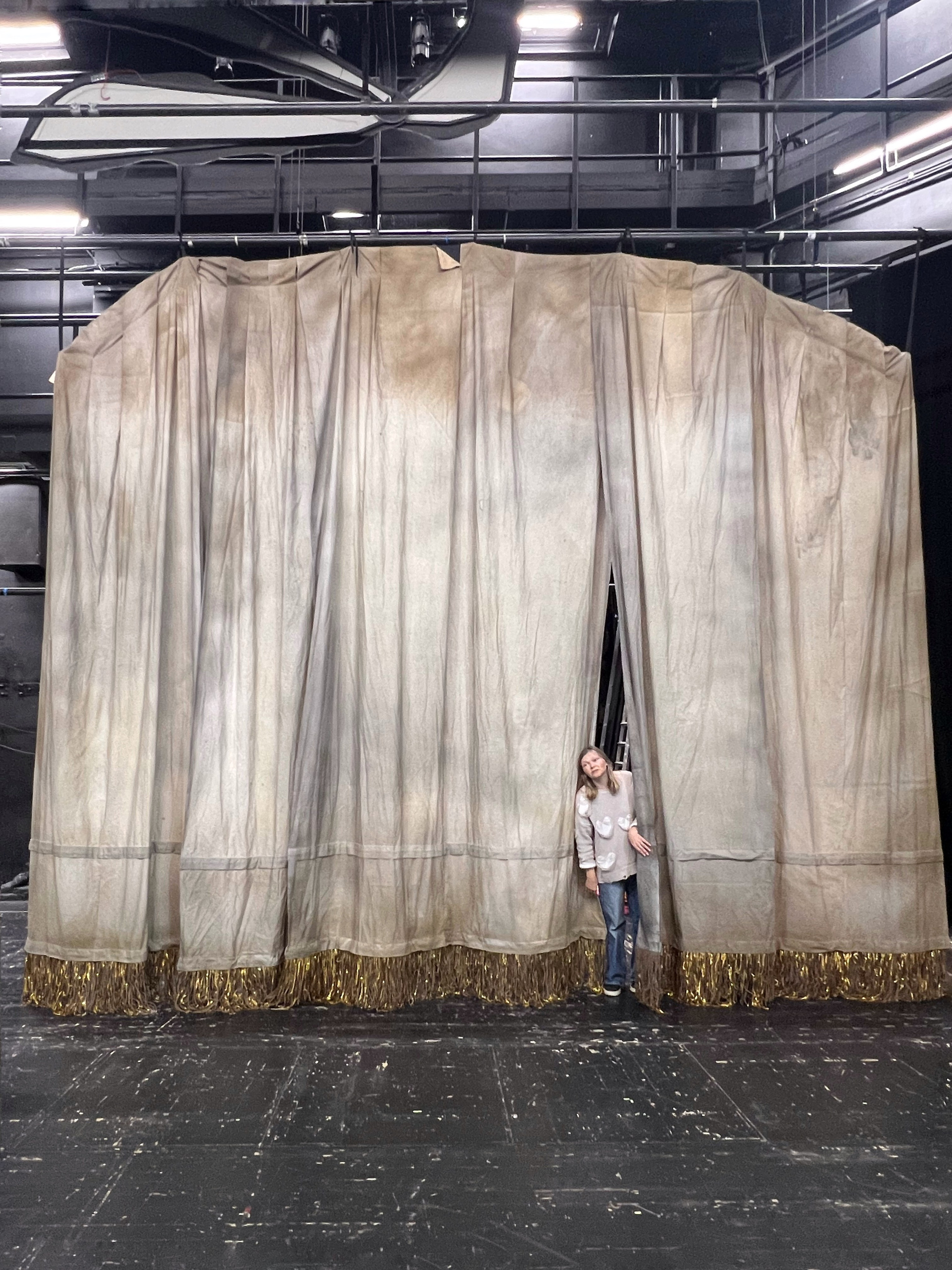 Занавес уехал на монтаж. Подвижный, на кольцах, он должен был уезжать вверх, но как обычно во время репетиций реальность внесла свои коррективы, и был найден еще более красивый рисунок движения ткани, чем сначала запланированный. Театр, во главе с художником, мужественно занимался экспериментами. А мы поддерживали связь, было ужасно интересно как же все сложится в итоге… И получилось все равно по-другому. Лучше, чем было задумано.
