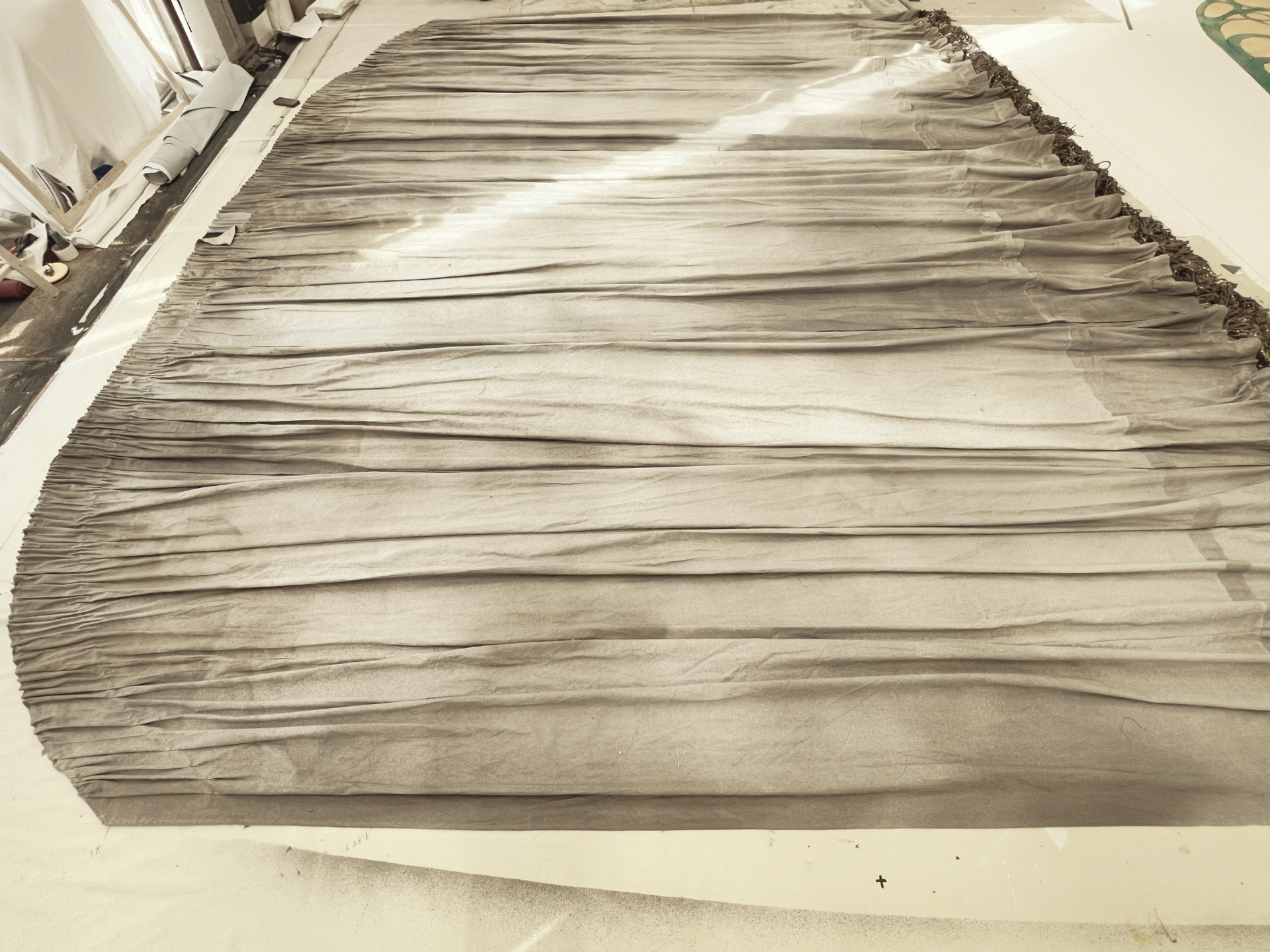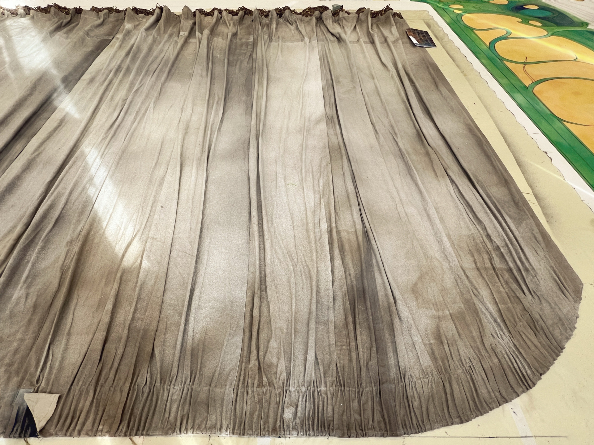 Занавес, прошедший через огонь, воду и медные трубы — точнее, через кривой крой, ручную бахрому и ту самую резинку, — наконец был готов. Он обрел дыхание. Он учился жить самостоятельно, уже отдельно от мастерской. Последние живописные штрихи наносили прямо при монтаже, на готовом изделии, вживую соотнося ткань с пространством сцены.