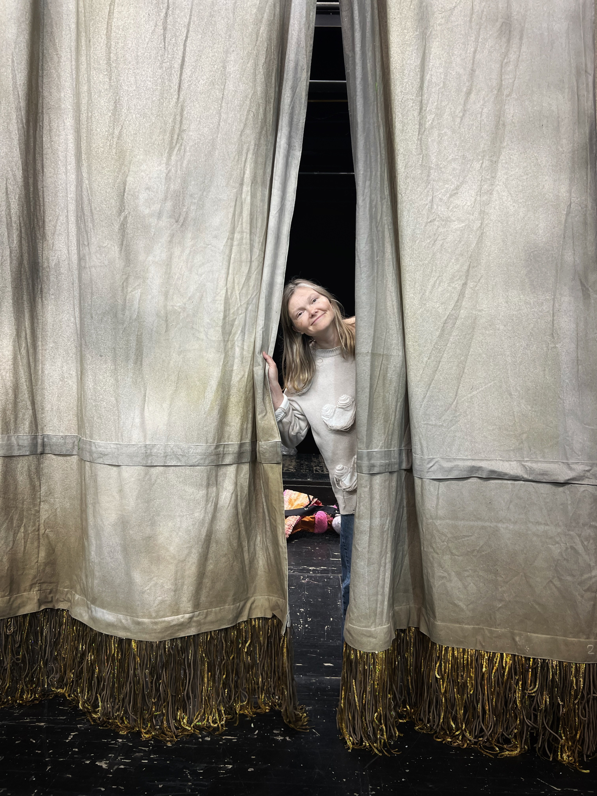 В финале был аккорд от художника: собрать занавес в мелкую сборочку наверху, «как резинка на спортивных штанах», — сказала Валерия. Мы посмотрели на уже собранный в благородную складку занавес, вдохнули поглубже… и переделали. Потому что когда художнику не всё равно, его неожиданные «хотелки» — это не каприз. Это и есть путь к настоящему сценическому волшебству.
