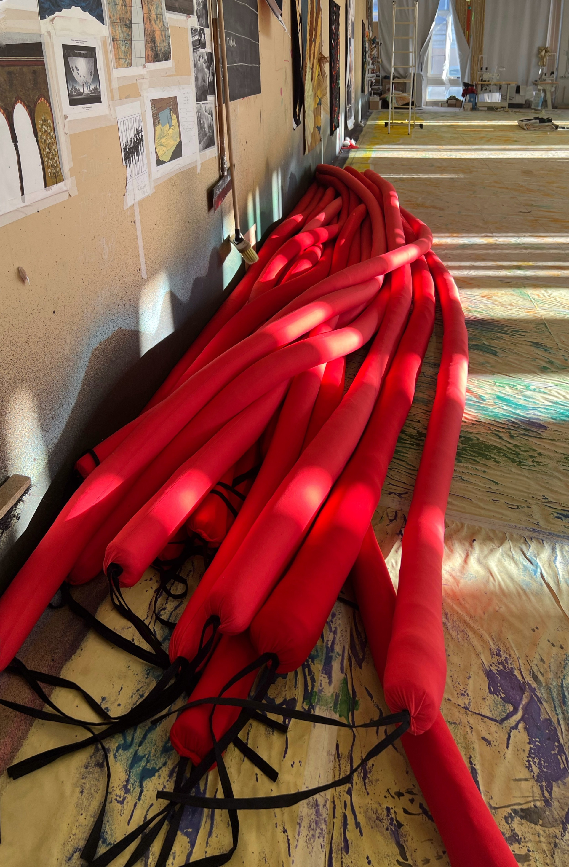Изначально, глядя на макет, мы поняли: часть декораций лучше сделать мягкими. Всё просто: проект задумывался как гастрольный. А гастроли — это всегда головоломка: как упаковать в одну машину целый мир, чтобы его можно было быстро собрать на другой сцене силами минимальной команды. Жесткие декорации — это время, деньги, грузчики и целый автопарк. Мягкие же, особенно если смотреть вперёд, часто оказываются экономичнее и, что главное, мобильнее. Мы решили пойти по пути наименьшего сопротивления — в хорошем смысле слова.