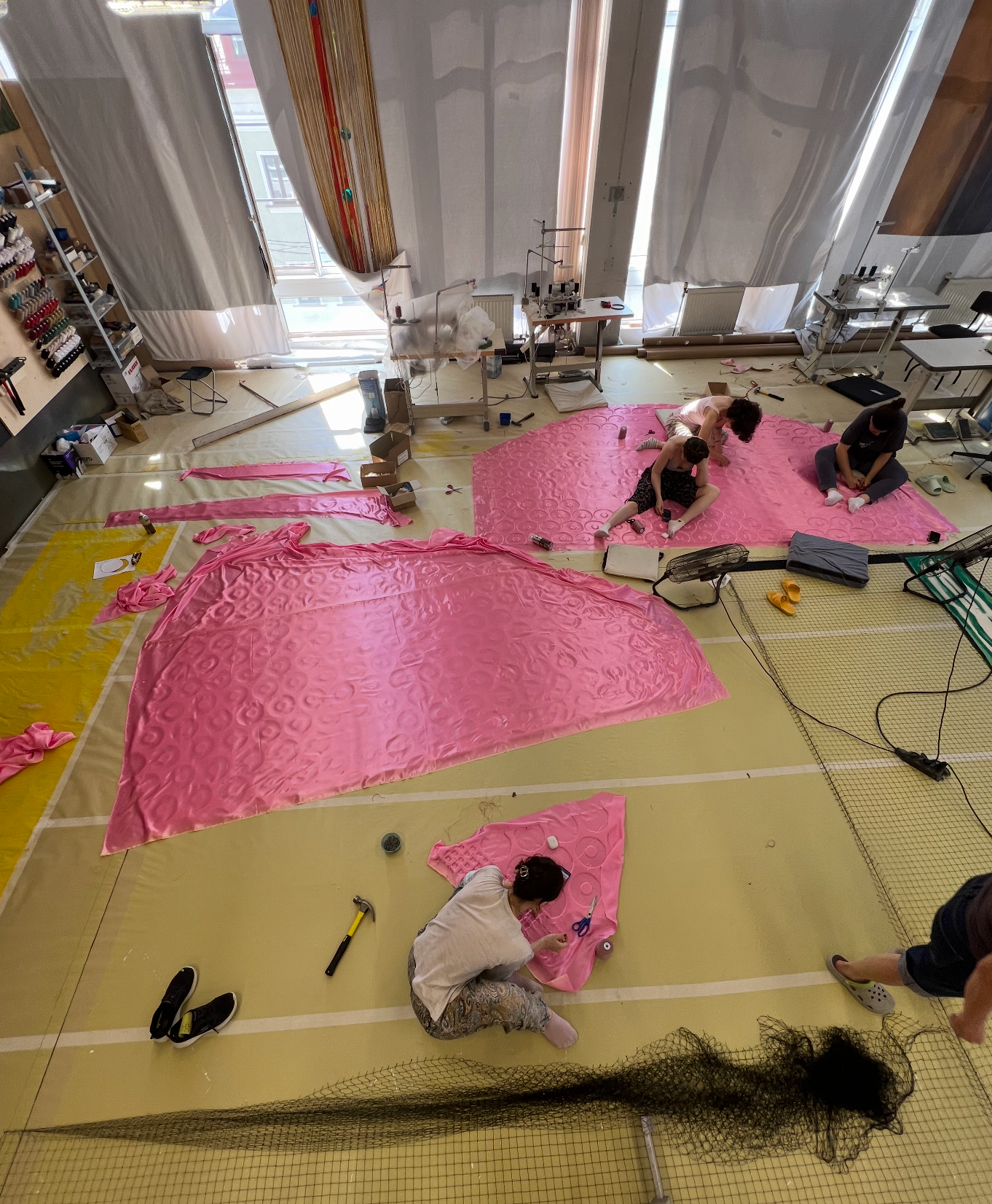 Вот вам история про «Трех поросят» в Театре на Таганке. Нет, не про тех, что из соломы и веток, а про тех, что из сетки и ткани. Для этого спектакля, где художником выступила Мария Трегубова, наша мастерская выступала в роли художника-технолога. А это значит, что наша задача была найти идеальный баланс между творческим замыслом и суровой театральной реальностью. И это тот случай, когда личное доверительное общение сыграло ключевую роль: когда у людей есть общая цель и они слышат друг друга — всё получается легче.