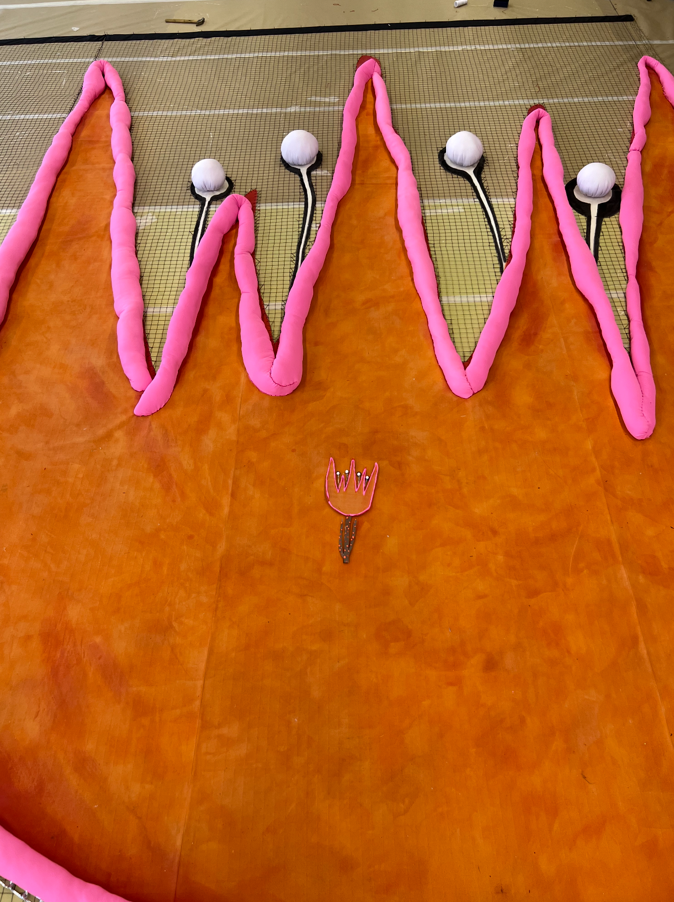 Кстати, на вопрос: можно ли любую фактуру повторить в мягкой декорации? Ответ: почти любую, но не всегда нужно. Когда на сцене соседствуют жёсткие и мягкие элементы, они всё равно будут отличаться по характеру. И это не недостаток, а художественный приём. В нашем случае эта разница работала на общую концепцию «детской поделки», где каждая деталь должна быть чуть-чуть уникальной.